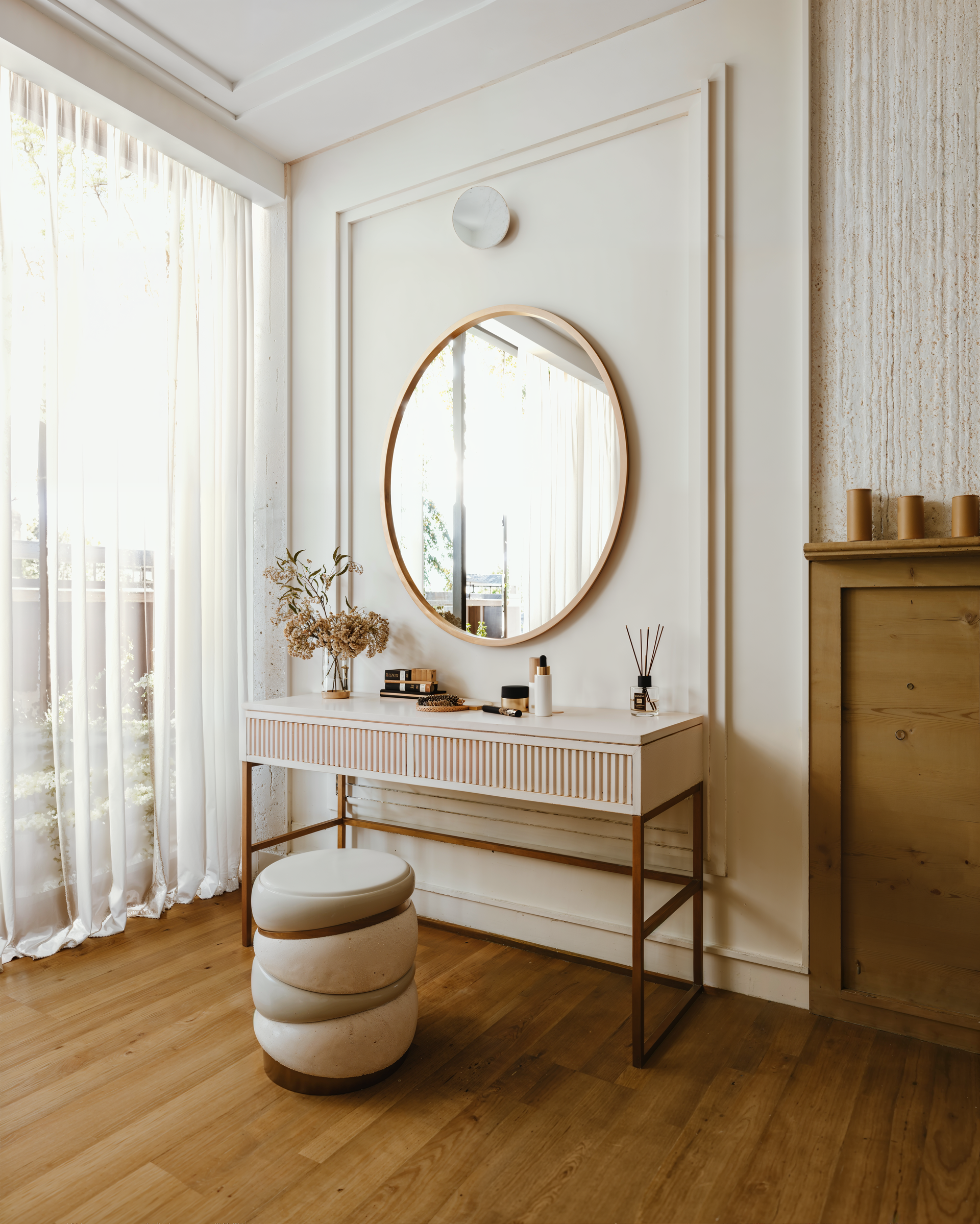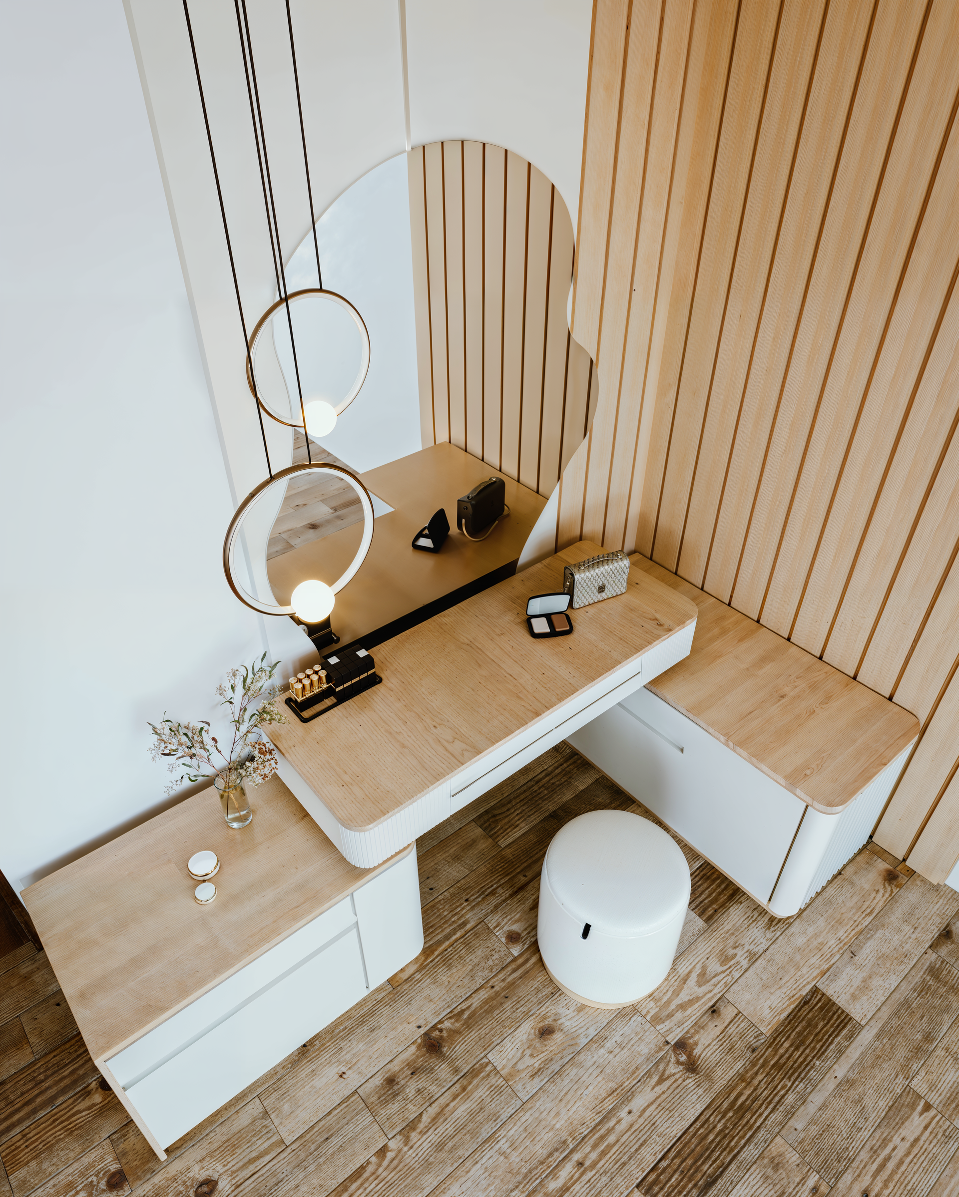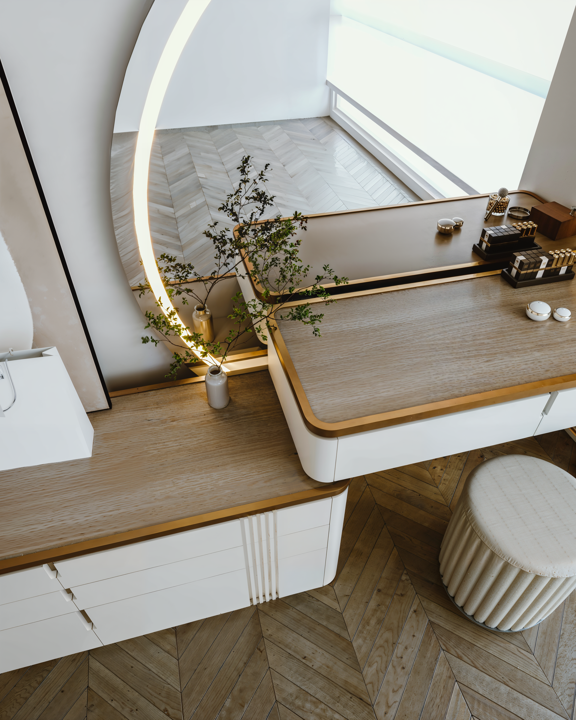 "En Mond Vanity, no solo diseñamos un tocador; creamos el entorno ideal para tu ritual de belleza. Diseñamos y fabricamos cada componente —desde la iluminación técnica y los espejos hasta los sistemas de almacenamiento para cosméticos— pensando en el equilibrio entre el glamour visual y el orden práctico. Fusionamos acabados premium con una organización inteligente, asegurando que tu espacio personal sea un entorno inspirador, eficiente y tan sofisticado como tu estilo."